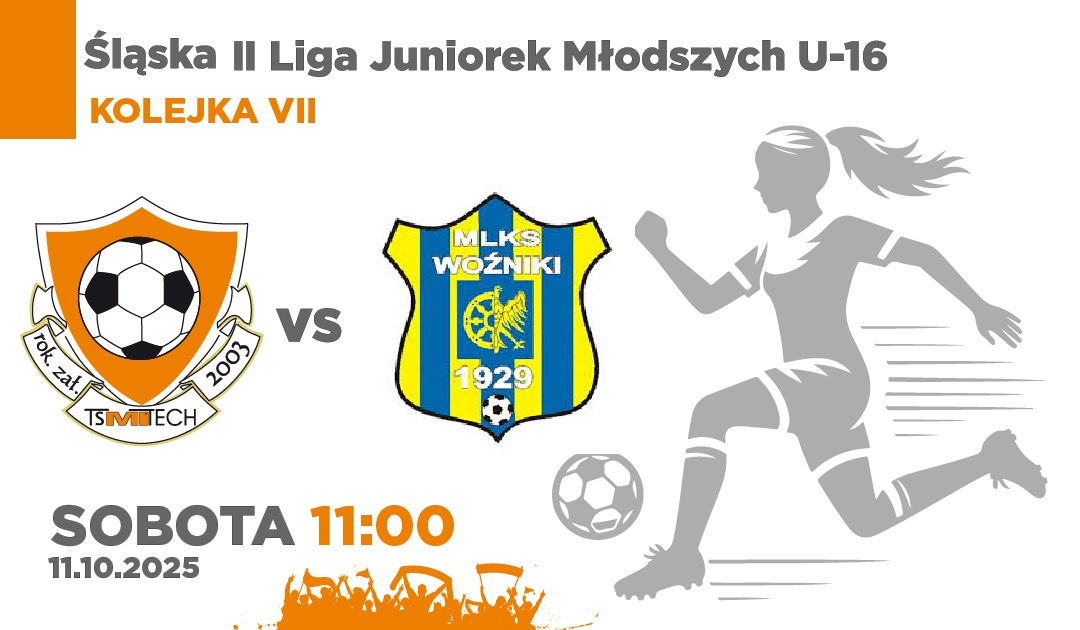 Juniorki TS Mitech grają 11.10.2025 r. / sobota / na boisku w Wieprzu o godzinie 11.00 z MLKS Woźniki.